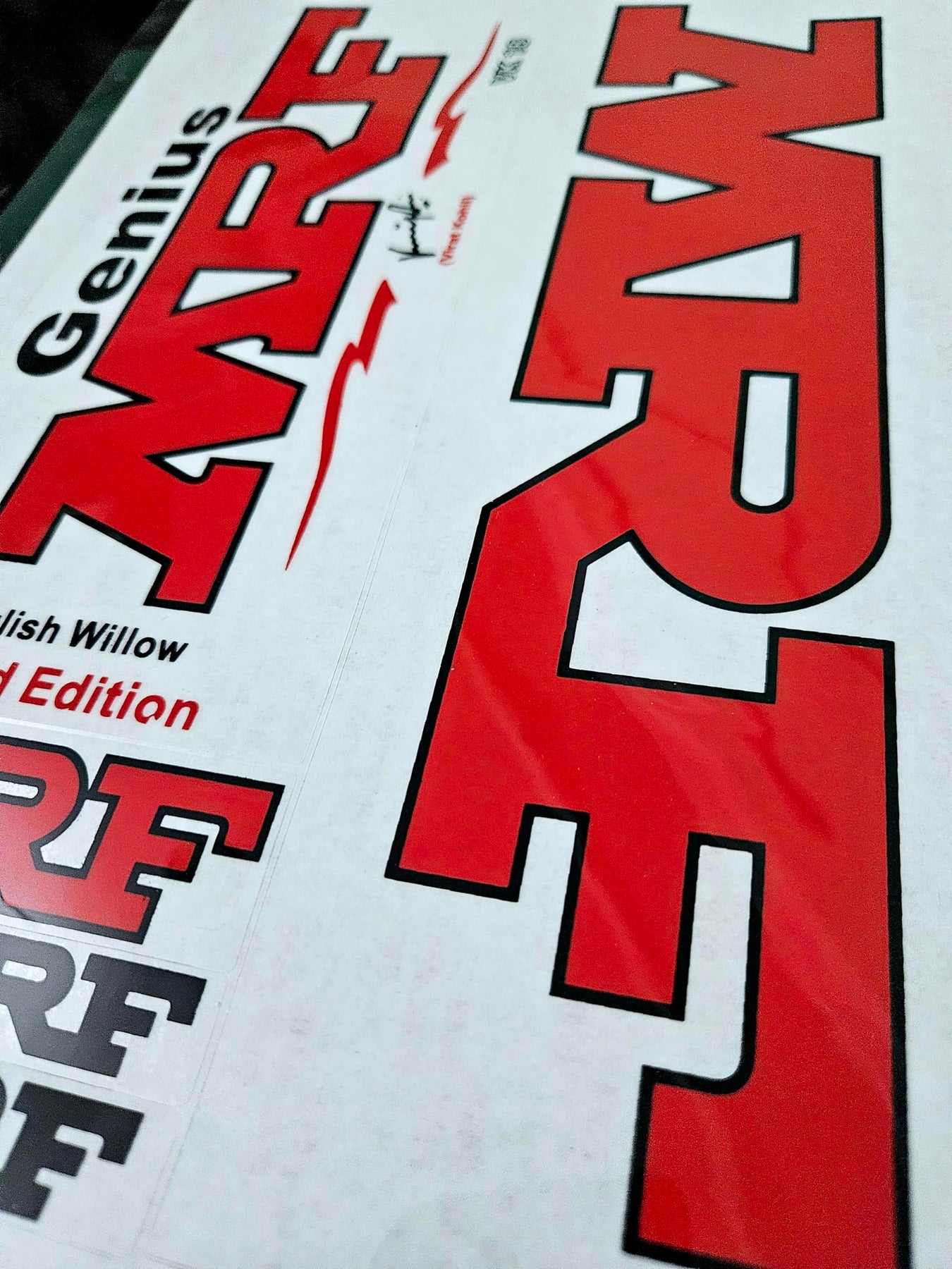 AYN Cricket Bat Sticker | 2D Plain English Willow Fiber Tape | MRF Red